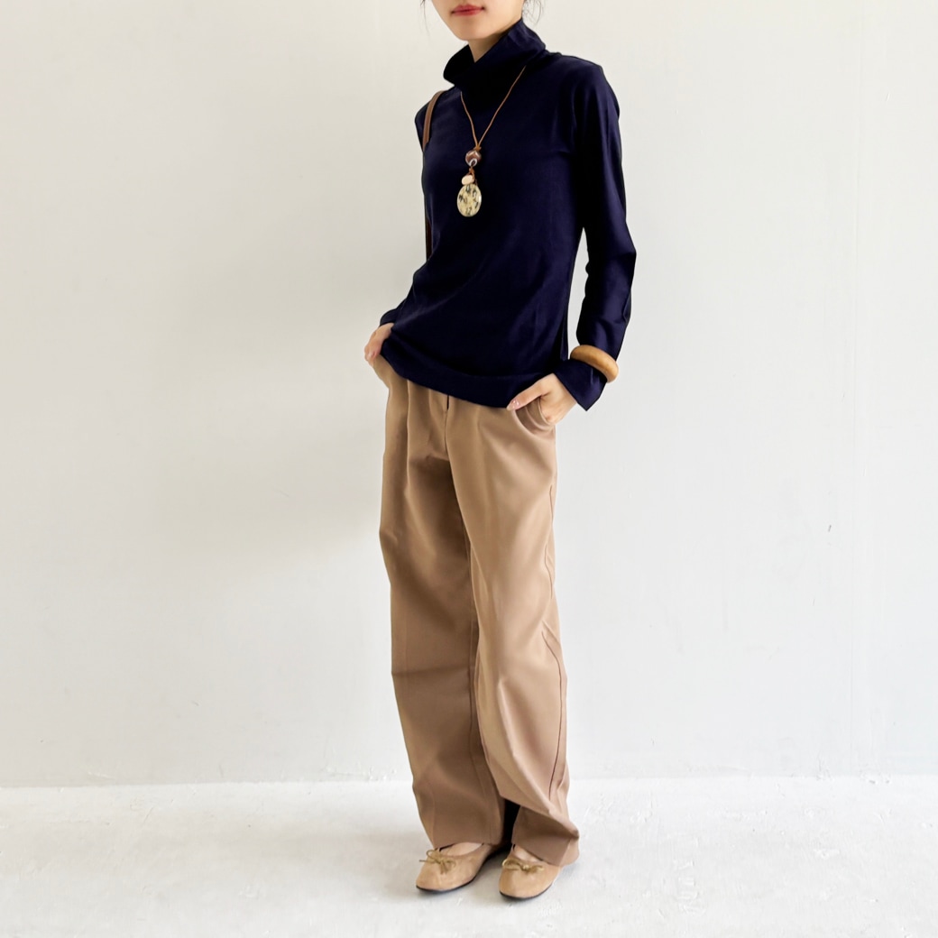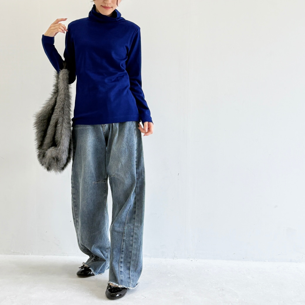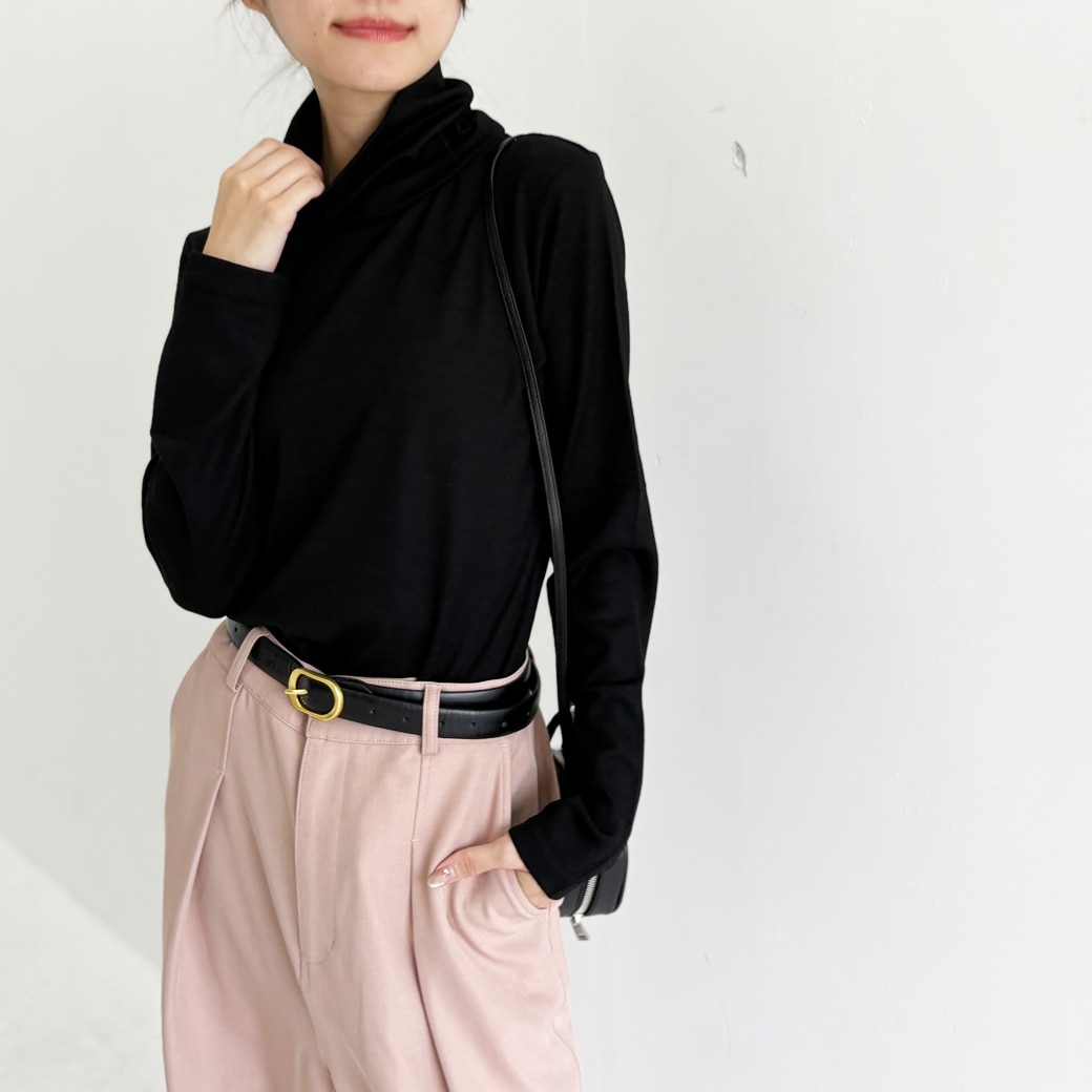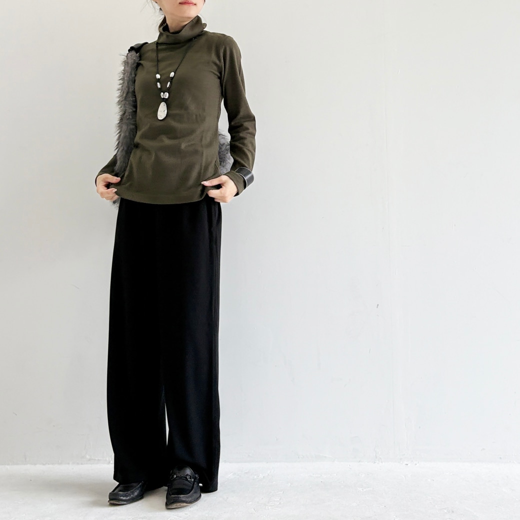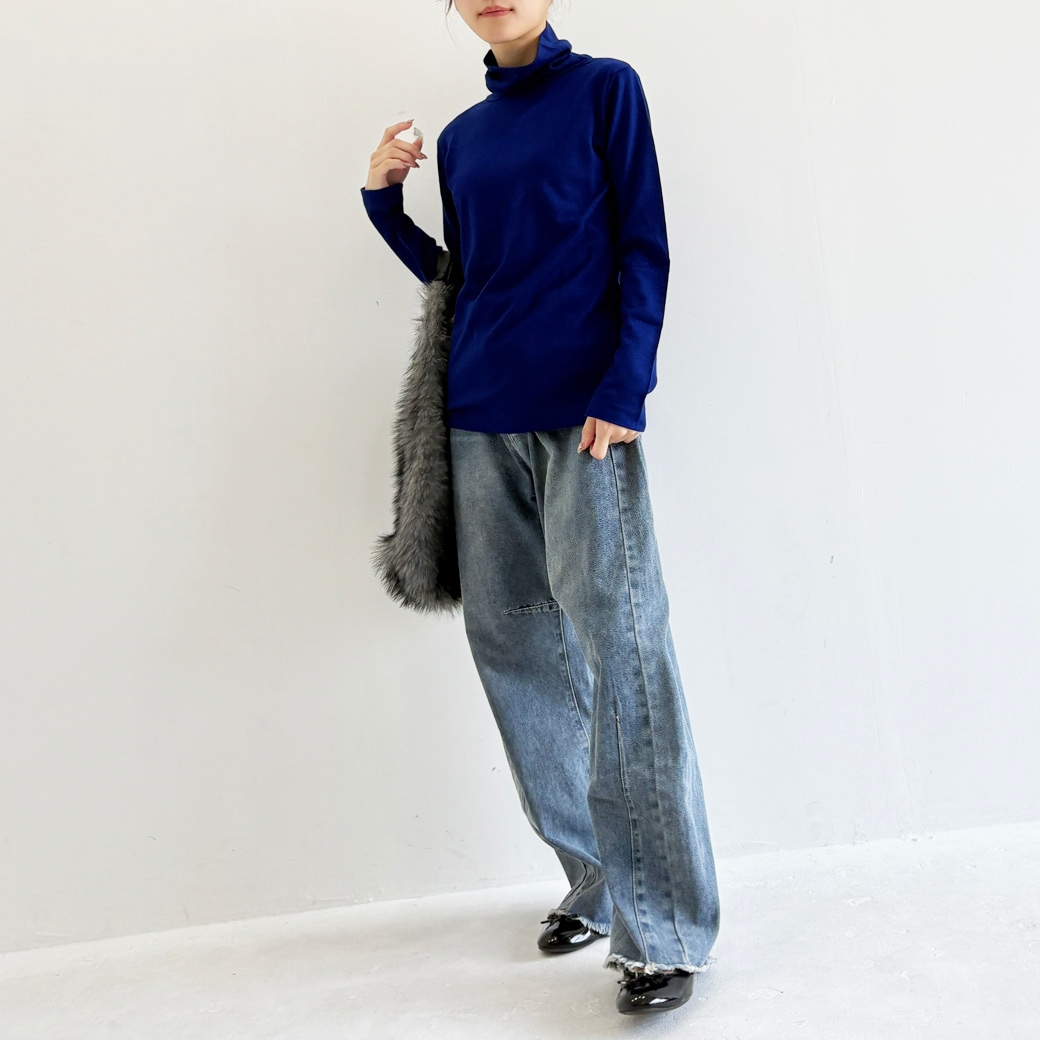ゆるいハイネックは折っても伸ばしても雰囲気抜群です