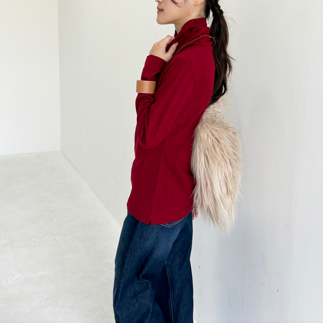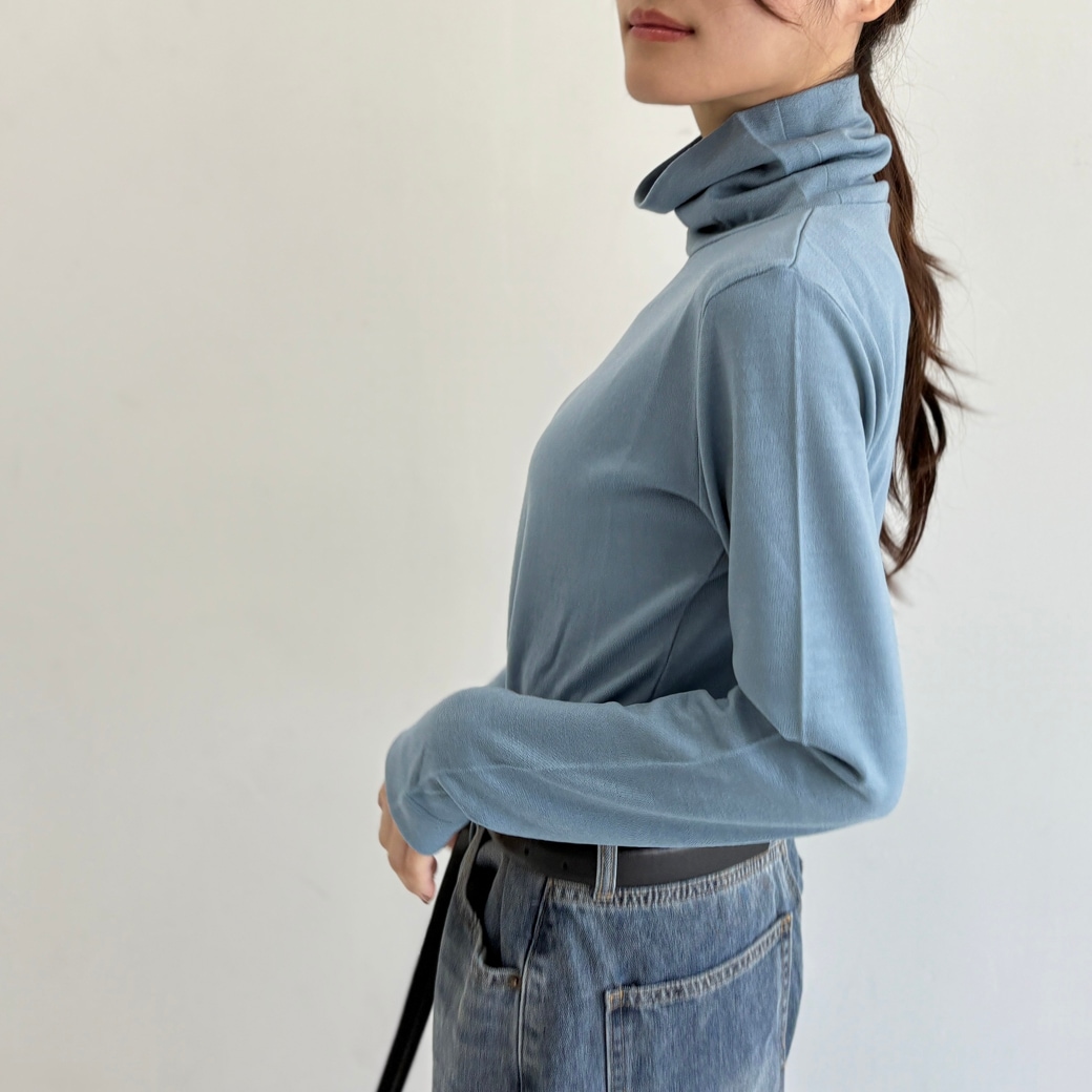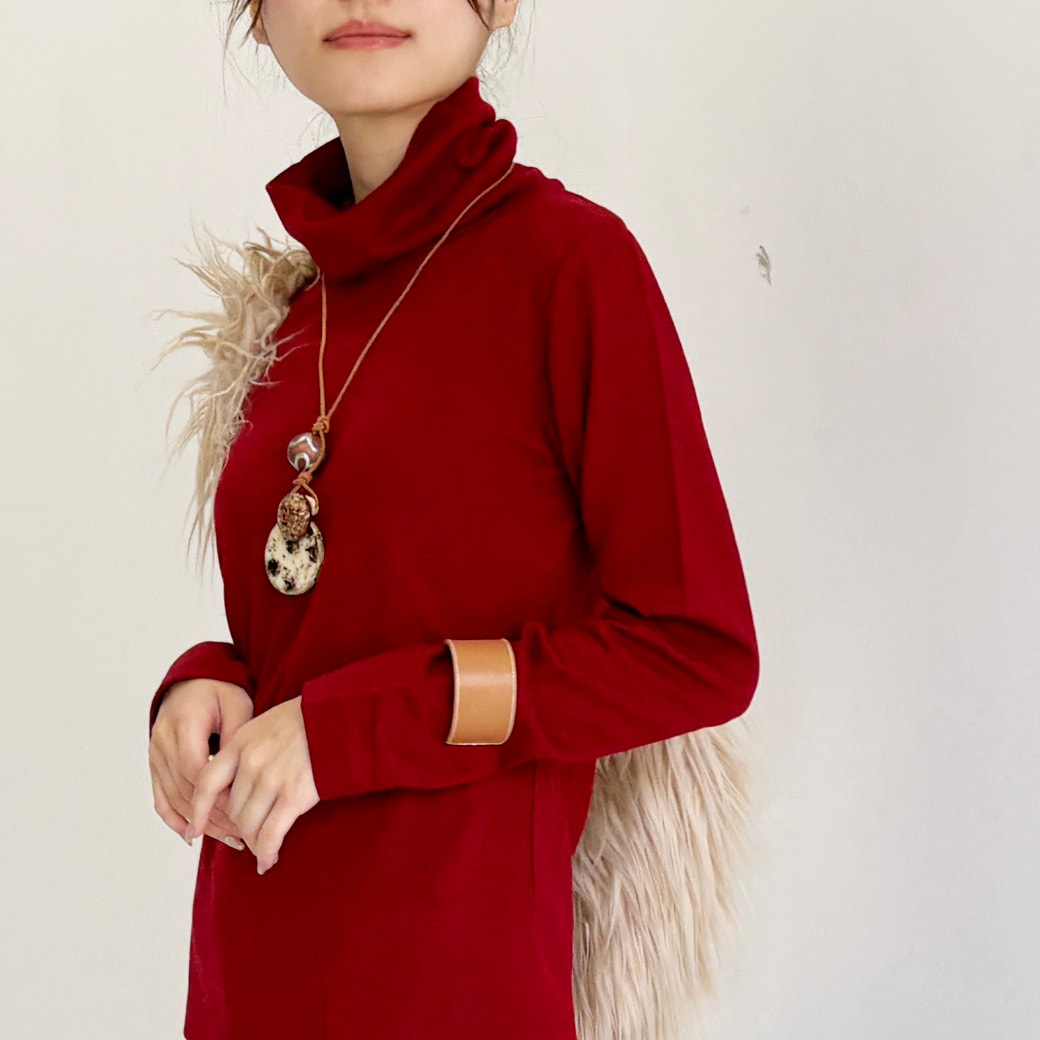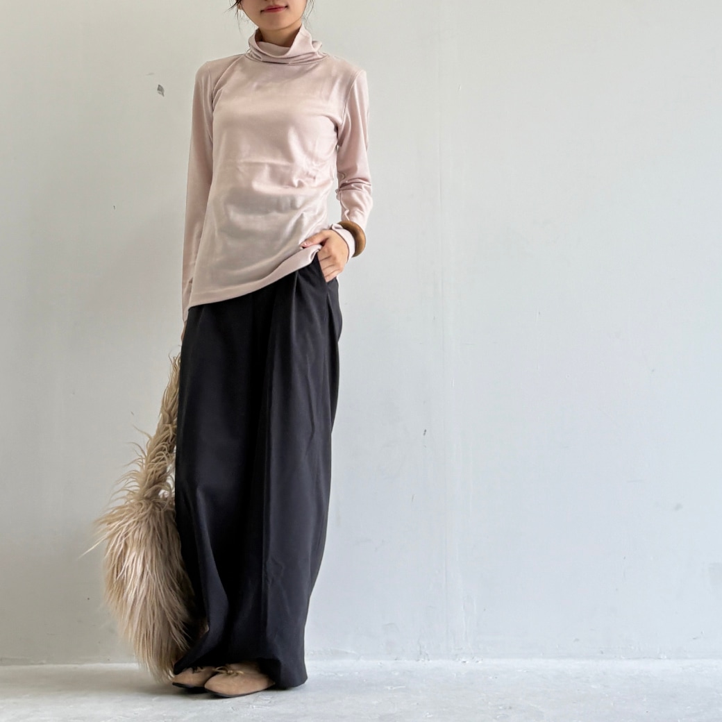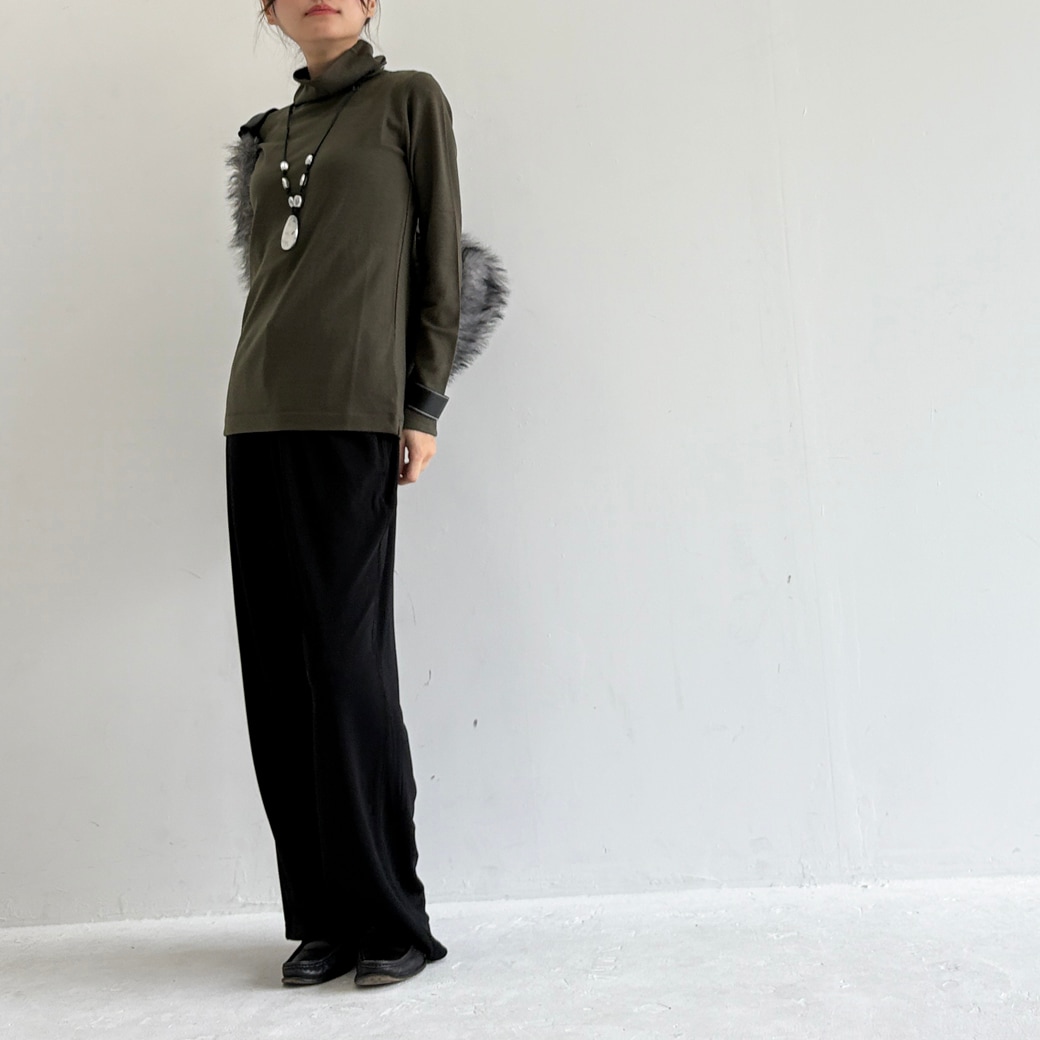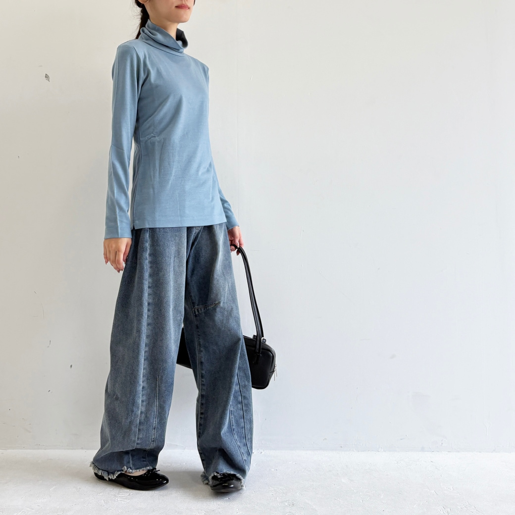 ゆるいハイネックは折っても伸ばしても雰囲気抜群です