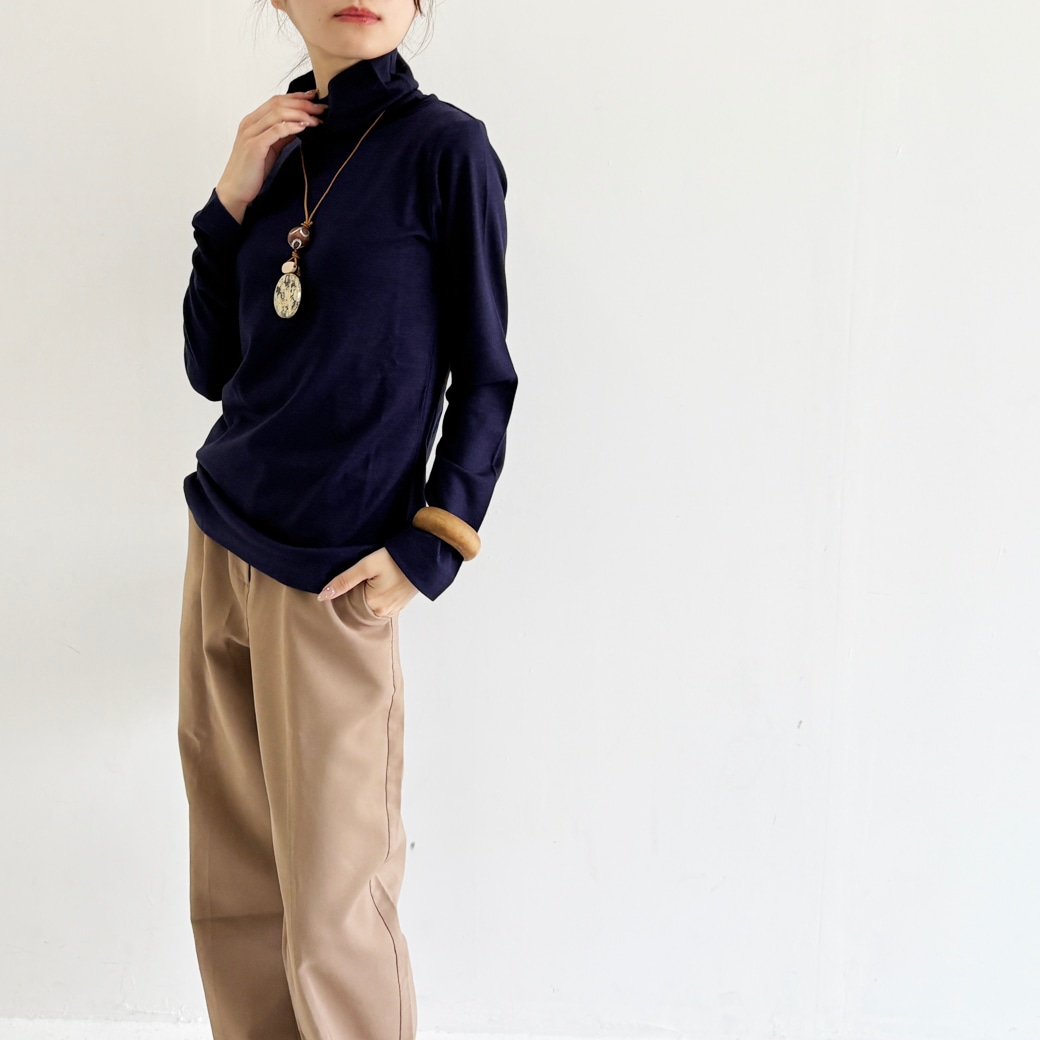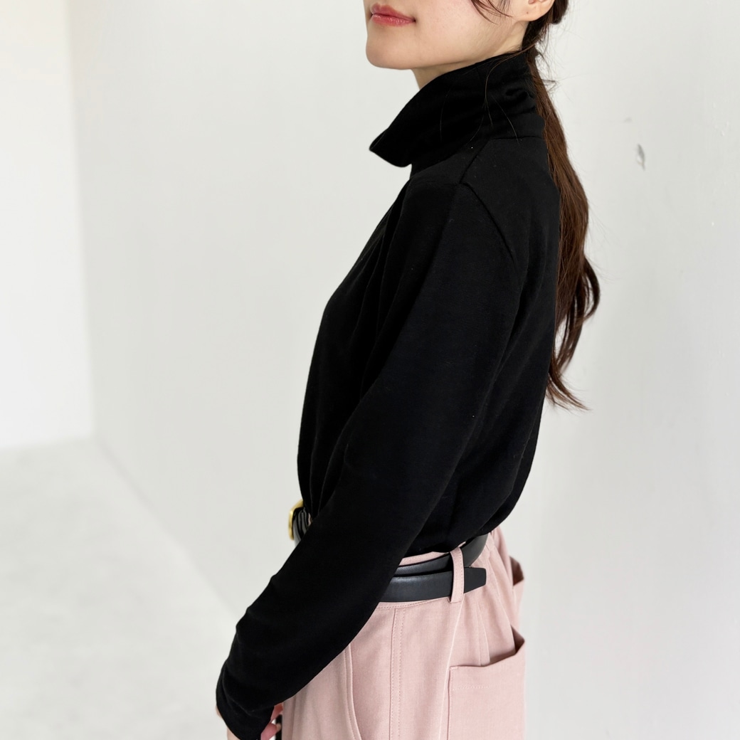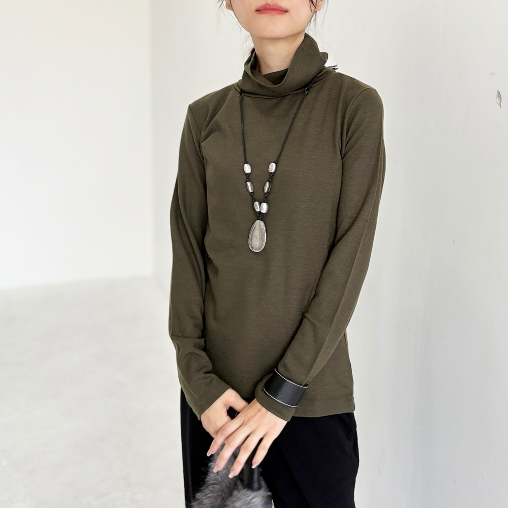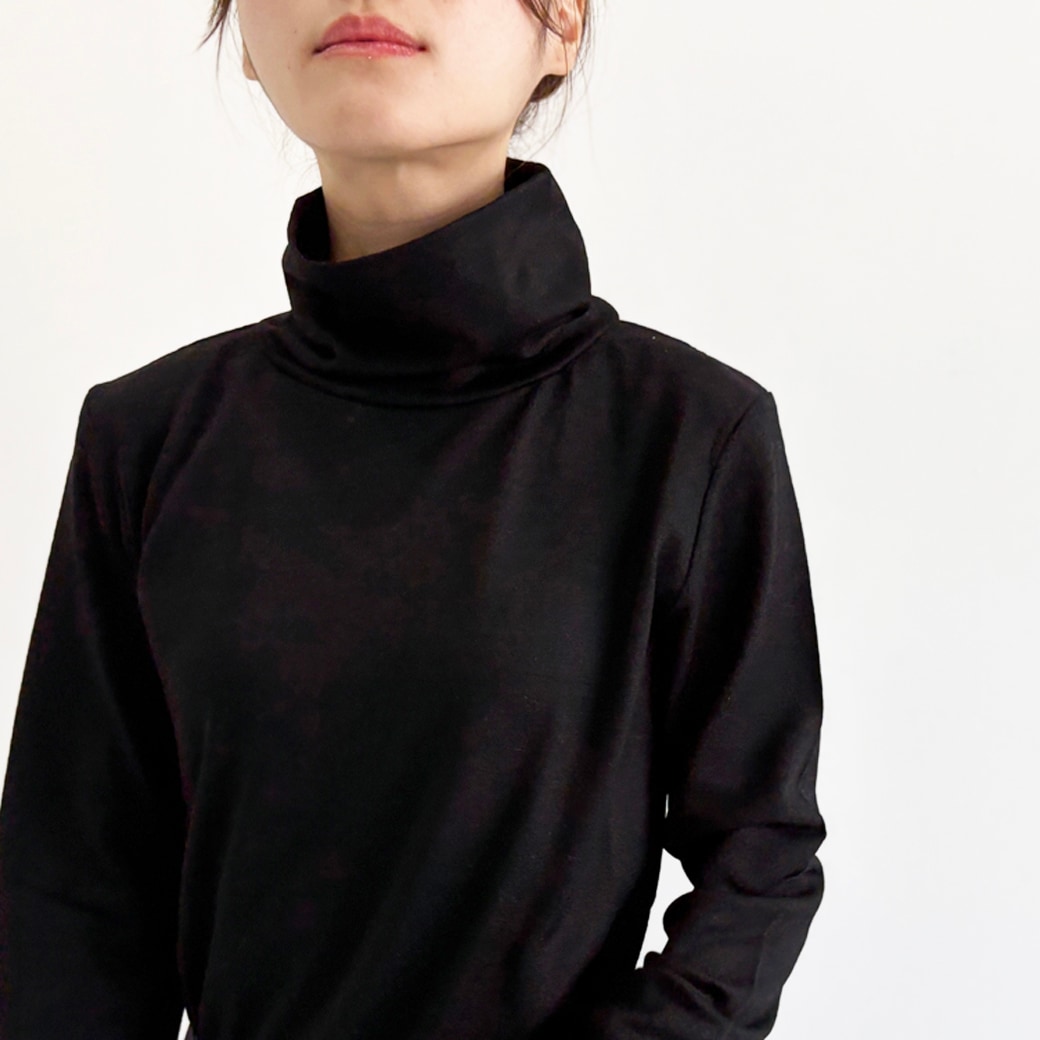ゆるいハイネックは伸ばして着ても折って着ても。