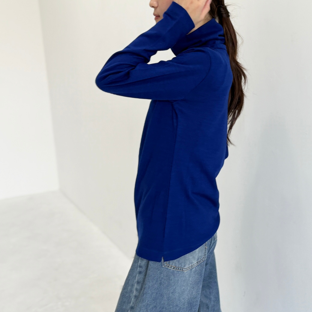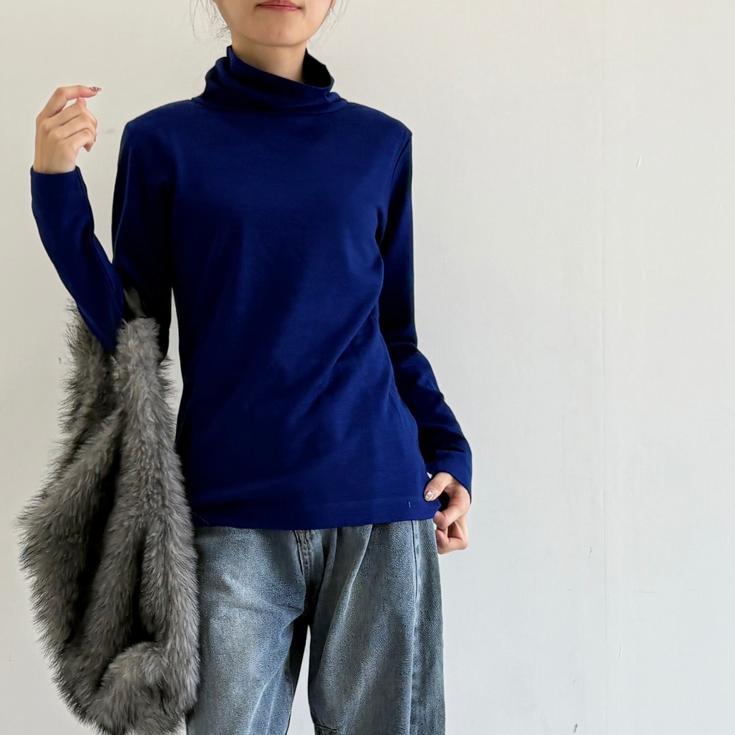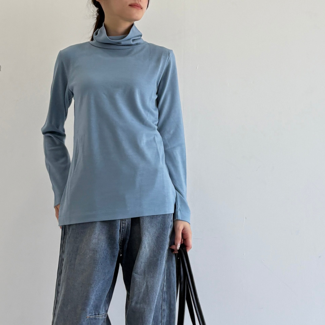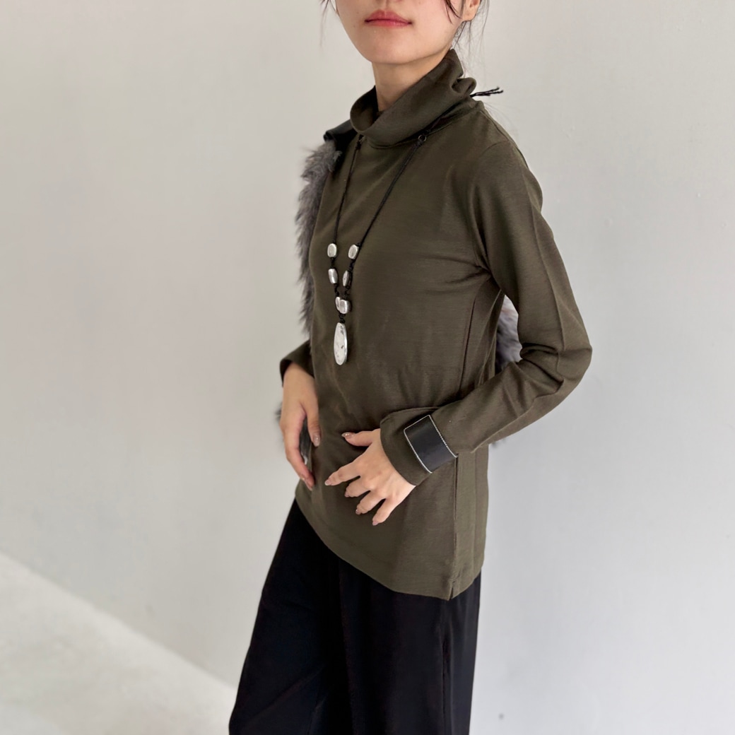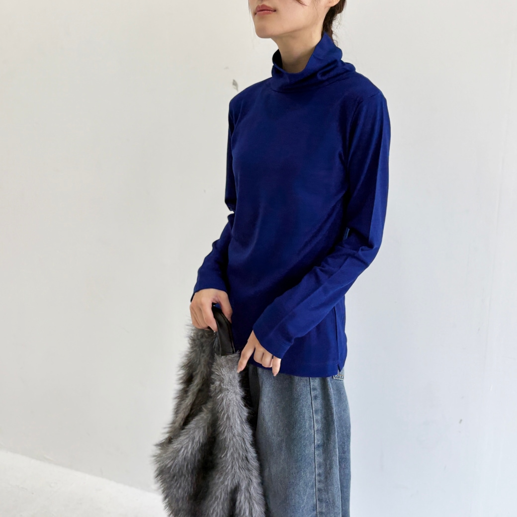 ゆるいハイネックは伸ばして着ても折って着ても。