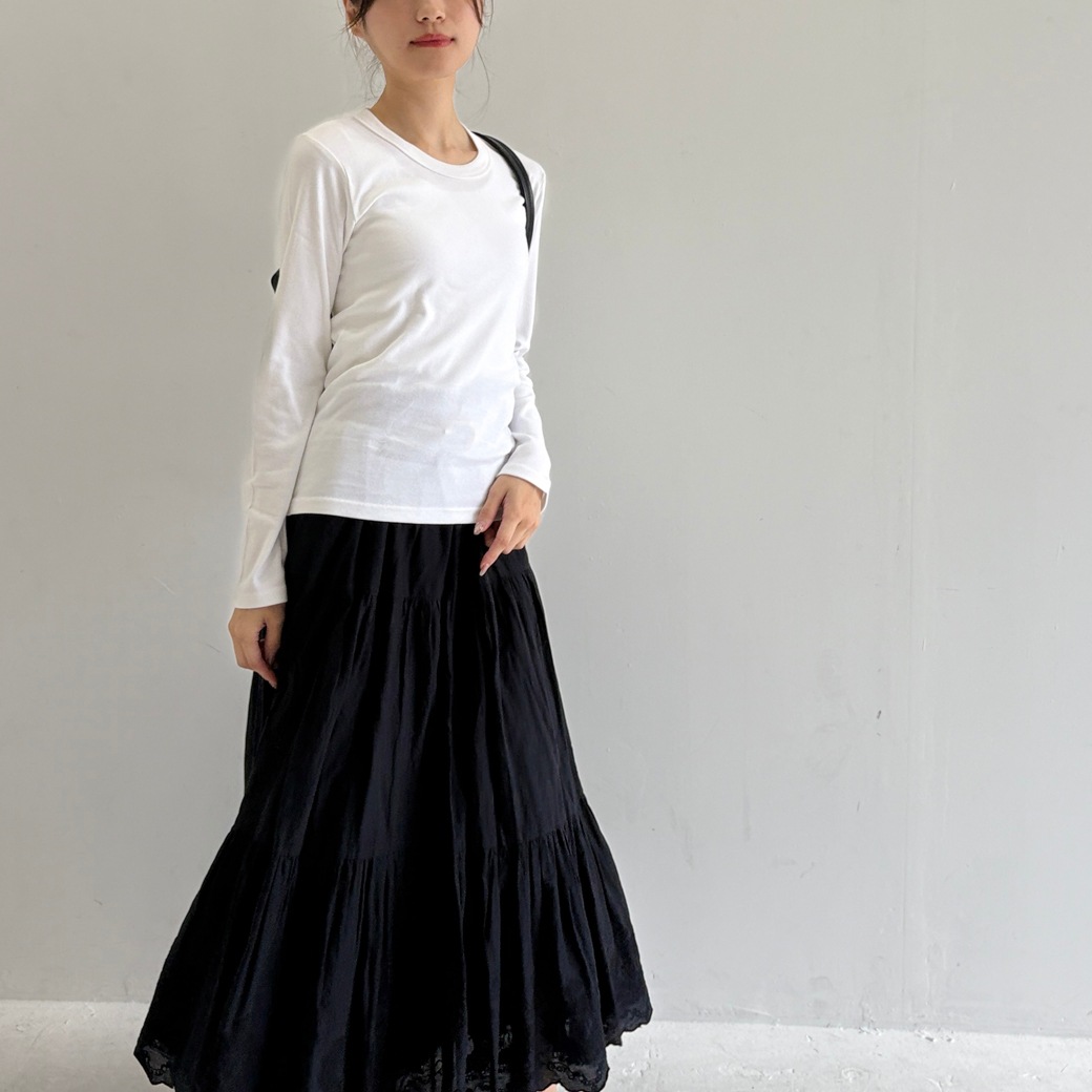 丸胴コットンフライス_ラウンドネック7分袖_63cm丈