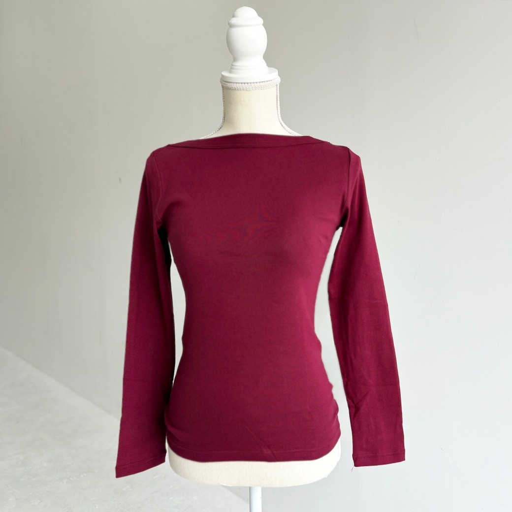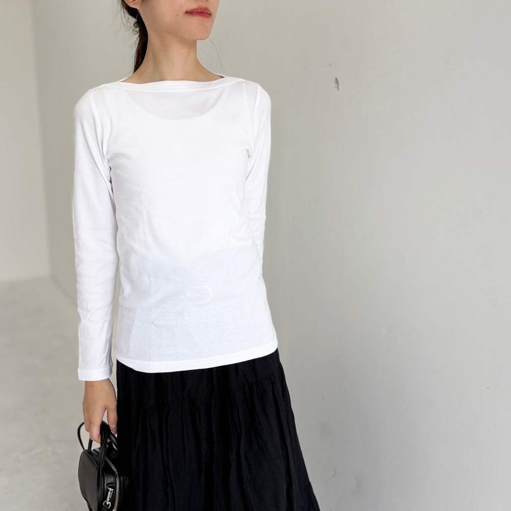 丸胴コットンフライス_ボートネック長袖