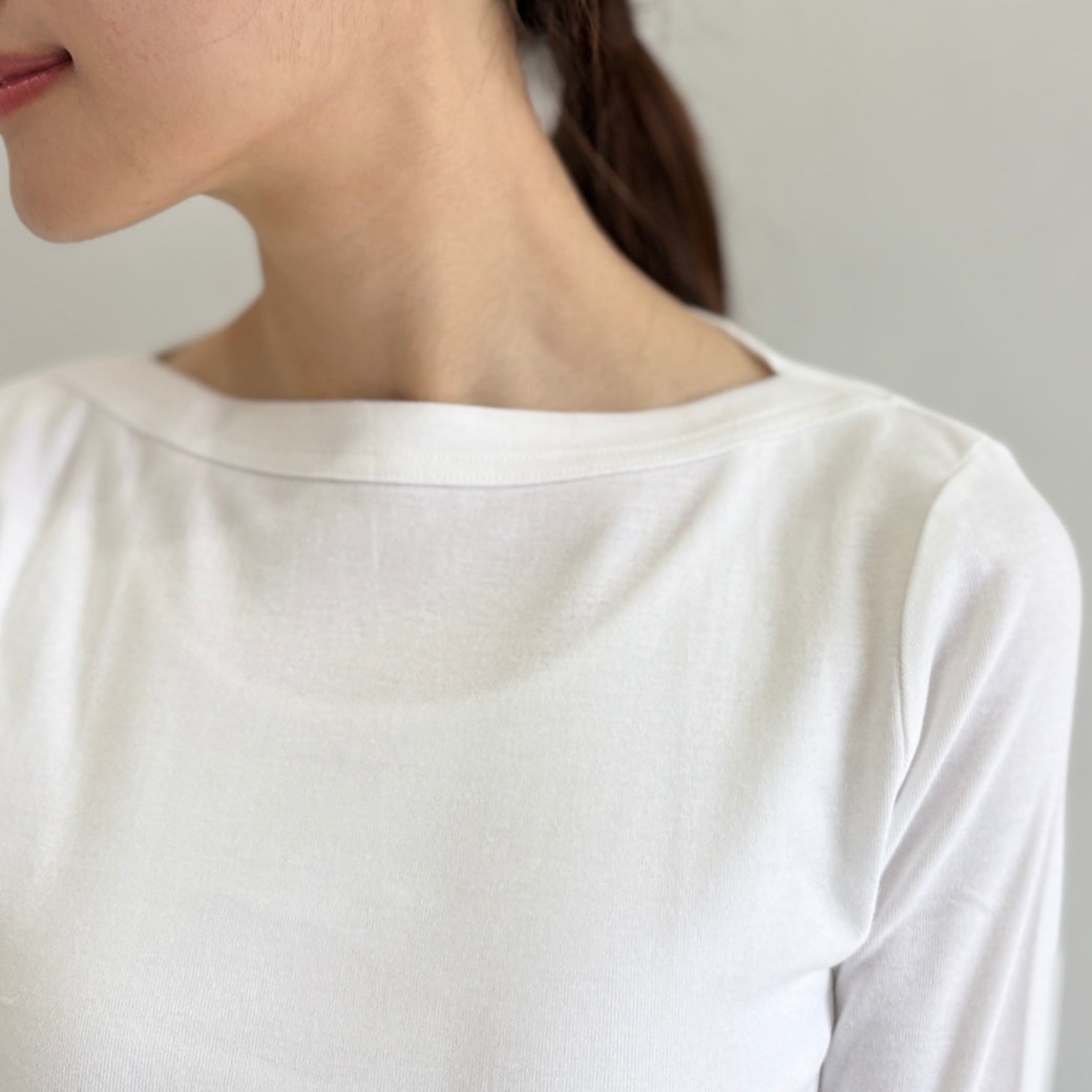 丸胴コットンフライス_ボートネック7分袖